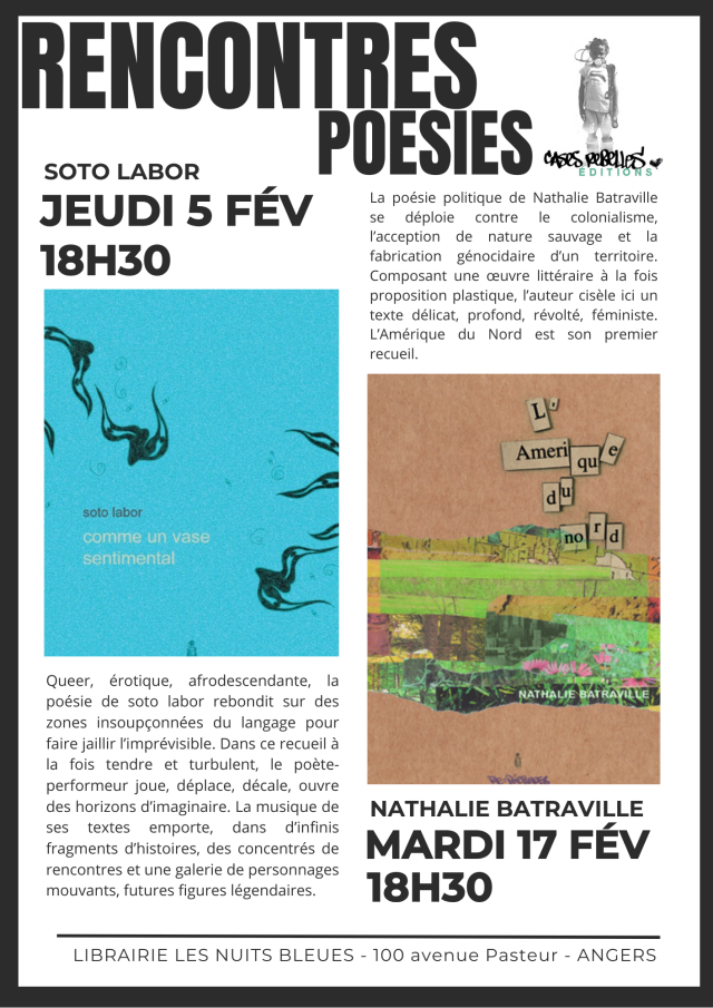 Rencontre Poésies avec 2 auteurices de chez Cases Rebelles ! Jeudi 5 et mardi 17 février à 18h30